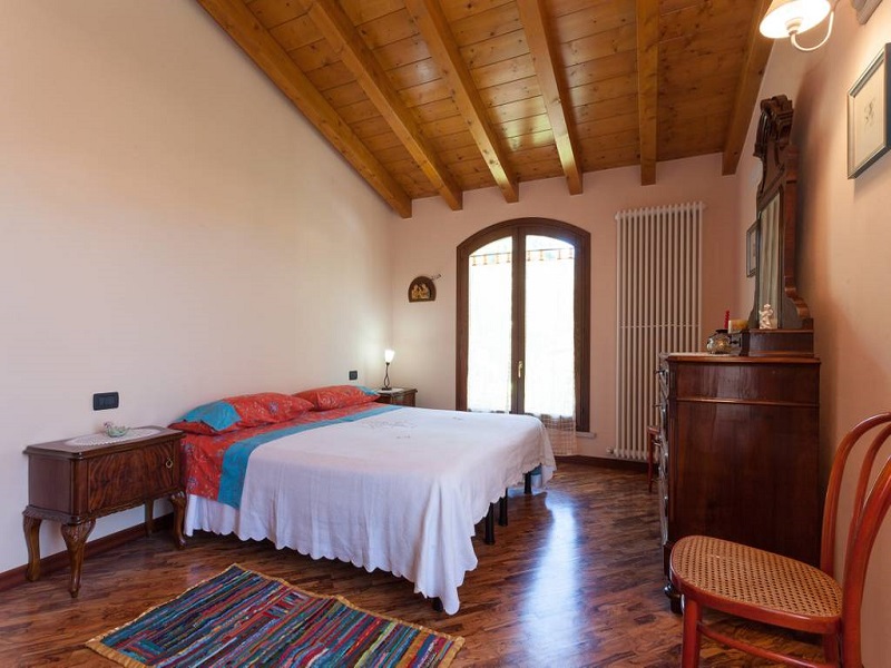 Al piano terra: entrata su area living, cucina, bagno. Scala in legno conduce al primo piano mansardato, con parquet e travi a vista, ove si trovano stanza da letto -con finestra affacciata sul verde- e secondo bagno. La casa ospita comodamente 3/4 persone: due nella stanza al primo piano e una/due sul divano-letto in soggiorno. Parcheggio auto/bici in cortile interno, di proprietà.